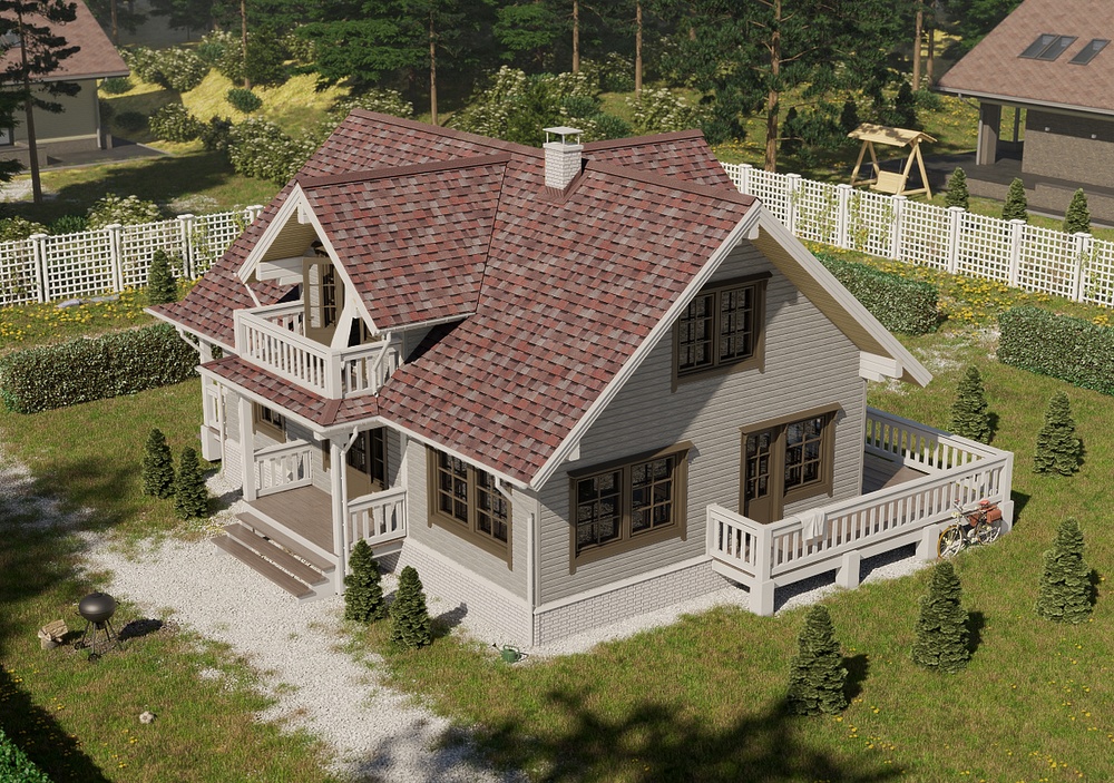 Благодаря глубокой офсетной печати по горячей поверхности панели сайдинга не тускнеют и не выгорают на солнце, сохраняя красивый натуральный тон и естественный древесный рисунок. Для облицовки фасада в единой эстетике используйте углы и профили в цвете «Яблоня».