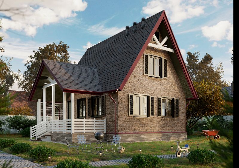 Углы с фактурой слоистого песчаника аккуратно закрывают торцы панелей и помогают создать эффект цельной облицовки. Для полной имитации каменной кладки используйте фасадные панели STEIN.